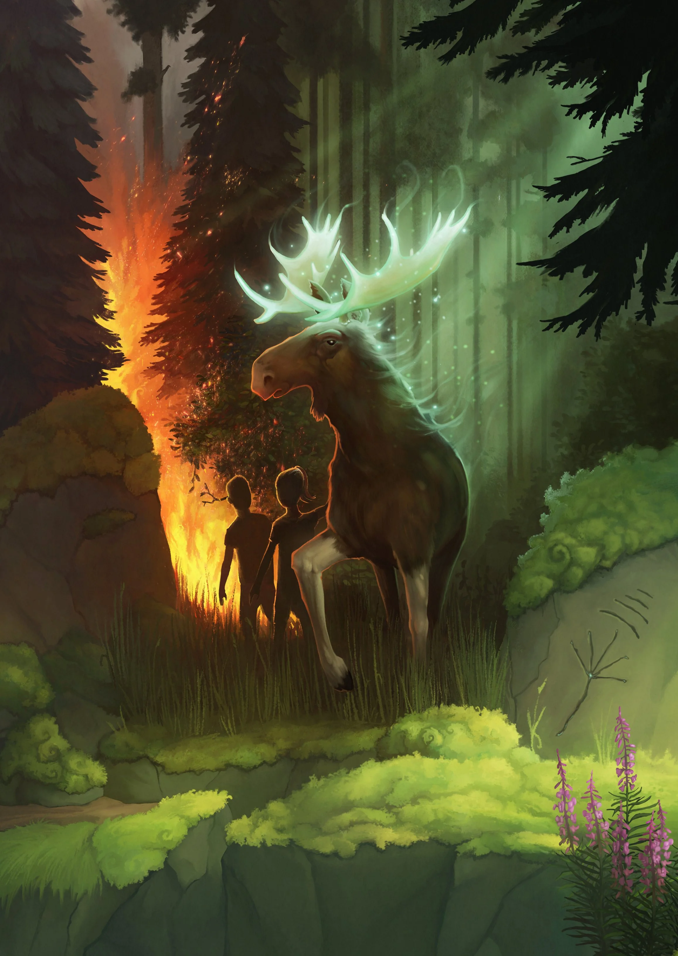 A book series focused on the folklore of northen sweden. It features mystical creatures, parallel timelines, different planes of exsistance and generational trauma. I painted the covers